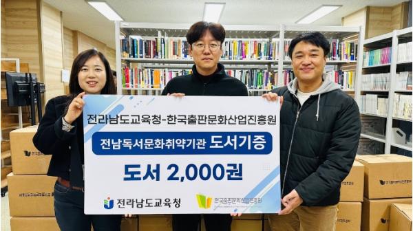이번 도서 기증은 지난해 한국출판문화산업진흥원(원장 김준희)과 체결한 ‘독서인문교육 환경·사회·투명 경영(ESG) 업무협약’에 따른 것이다. 두 기관은 이 협약으로 전남지역 독서 활성화 교육지원 및 독서문화 소외지역의 교육?문화격차 해소 등 공생의 독서교육 협력 체제를 구축한 바 있다.