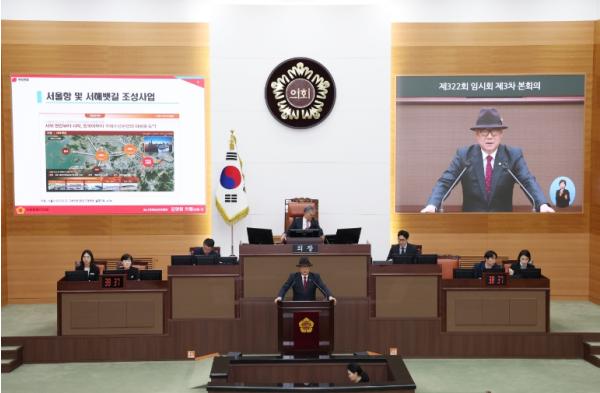 김영철 의원은 '그레이트 한강프로젝트'계획 내 '서울항 및 서해뱃길 조성사업'에 대해 언급하면서, 서해뱃길 조성과는 달리 열리지 않고 있는 한강의 동쪽길에 대한 문제의식을 제기하며 시정질문을 시작했다.