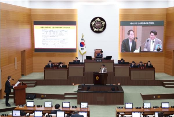 [중앙뉴스라인, 이승훈기자] 서울시의회 홍국표 의원(국민의힘·도봉2)은 23일 제322회 임시회 제4차 본회의 시정질문을 통해 지연되고 있는 서울신창초등학교 그린스마트미래학교 사업의 문제를 지적하고 신속한 사업 추진을 촉구했다.