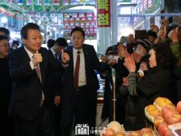 전통시장 상인 격려, 충남 지역 경제 활성화에 대한 의지 밝혀