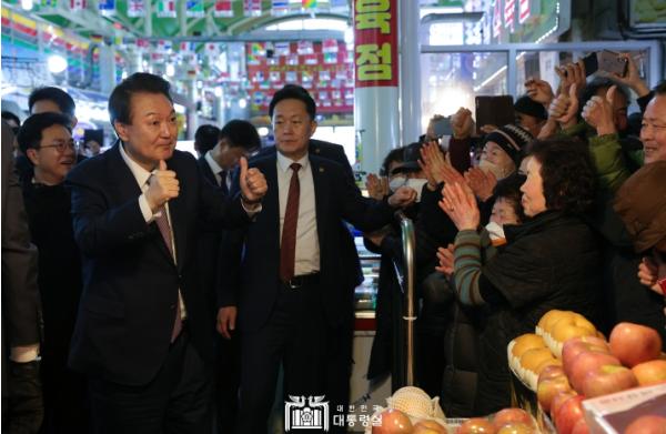 [중앙뉴스라인, 우제헌기자] 윤석열 대통령은 2월 26일 오후 충남 서북부 지역 대표 전통시장인 서산동부전통시장을 방문했다. 대통령이 서산동부전통시장을 방문한 것은 대통령 후보 시절(22.2월)에 이어 두 번째이다.