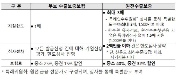 이번 프로그램은 해외 수주에 성공하고도 여신한도 부족으로 인해 수출보증을 받지 못하는 사례 등을 해결하기 위해 마련된 것으로, 원전 중소·중견기업의 수출보증 한도를 기존 대비 최대 3배까지 확대하고, 2백만 불 이하의 보증에 대해서는 심사 절차를 간소화했다. 보험료도 20% 추가 할인하여 기업들의 부담을 크게 줄였다. 원전·금융분야 전문가로 특례인수위원회를 구성, 부보율 제한(90% 이내), 기업별 총한도 설정(최대 1,500만 불) 등 위험관리를 위한 안전장치도 마련했다.
