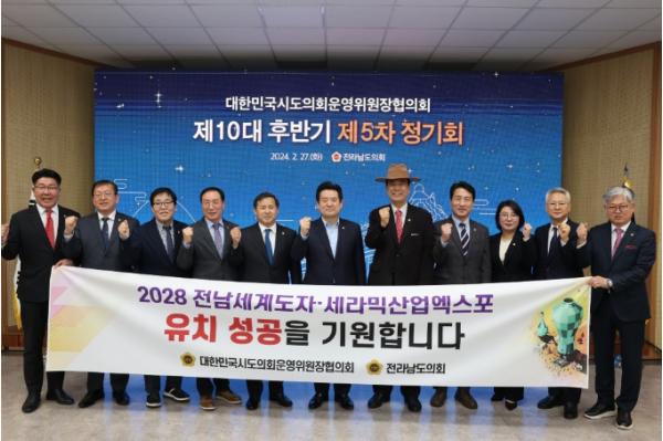 아울러 “2028전남세계도자ㆍ세라믹산업 엑스포 유치가 전남 도자산업의 세계시장 진출 및 미래형 도자산업 부가가치 창출을 도모하는 계기가 될 것으로 기대한다”며, “전국 17개 시도의회 운영위원장들께서 함께 응원해 주고 성원해 주길 부탁드린다”고 당부했다.