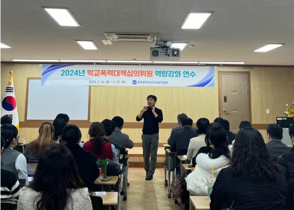 [중앙뉴스라인, 김병연기자] 광주서부교육지원청이 2월 26~27일 광주교육시민협치진흥원설립추진단에서 서부학교폭력대책심의위원회 심의위원을 대상으로 ‘2024년 학교폭력대책심의위원 역량 강화 연수’를 실시했다.