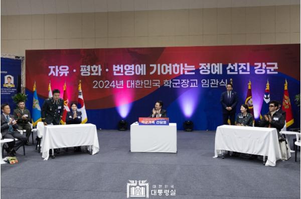 대통령은 간담회 인사말에서 “국방의 최일선에서 리더십을 발휘하는 청년 장교들이 국가방위의 핵심 자산”이라며, “여러분이 힘을 내서 복무할 수 있도록 모든 노력을 아끼지 않겠다”고 밝혔다. 또한, “이제 각자의 임지에 부임하면 장병들과 가장 가까이에서 초급 지휘자 역할을 수행하게 될 것”이라며, “우리 장병들이 확고한 국가관과 안보관으로 무장할 수 있도록 신임 장교들이 잘 이끌어 주기 바란다”고 당부했다.