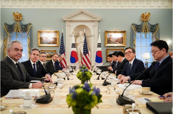 [중앙뉴스라인, 신기철기자] 미국을 방문중인 조태열 외교부장관은 2월 28일 오후(현지시간) 美 국무부 에서 안토니 블링컨(Antony J. Blinken) 국무장관과 취임 후 첫 한미 외교장관회담을 가졌다. 한미일 외교장관회의(2.22) 후 6일 만에 다시 만난 양 장관은 한미동맹·한미일 협력, 북핵?북한 문제, 정보협력, 지역?글로벌 현안 등에 대해 유익하고 심도깊은 논의를 했다.