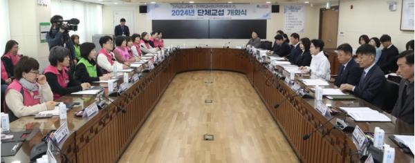 [중앙뉴스라인, 김민수기자] 전라남도교육청과 전국학교비정규직연대회의(전국학교비정규직노동조합, 전국공공운수노동조합 전국교육공무직본부, 전국여성노동조합)는 4일 전남교육청 5층 상황실에서 ‘2024년 단체교섭 개회식’을 가졌다.