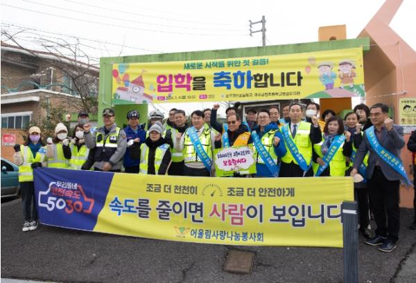 또 스쿨존을 통행하는 운전자들에게 횡단보도 일단 멈춤, 어린이 보호구역 내 규정속도 준수, 불법 주·정자 금지 등 스쿨존 내 어린이 교통사고 ZERO를 위한 홍보활동도 펼쳤다.
