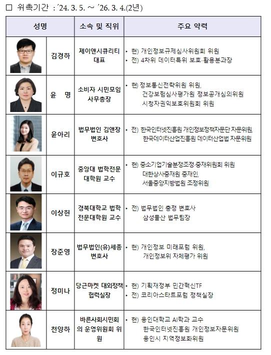 신규 위촉된 위원들은 개인정보 등 데이터 관련 분야 및 피해구제 분야 전문가로서, 분쟁조정위의 전문성을 한층 더 높일 수 있을 것으로 기대된다.