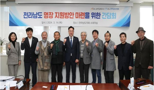 [중앙뉴스라인, 김민수기자] 나광국 전남도의원(더불어민주당?무안2)은 지난 3월 14일 전라남도의회에서 전라남도 명장과 전남도 관계 공무원이 자리한 가운데 ‘전라남도 명장 지원방안 마련을 위한 간담회’를 개최했다.
