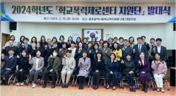 광주동부교육지원청 정성숙 교육장은 “학교폭력제로센터를 통해 학교폭력 문제에 더욱 체계적이고 유기적으로 대응할 계획이다. 이를 통해 학생들이 더 안전하고 건강한 학교 환경에서 학습할 수 있도록 지원하는 것이 목표다”며 “학교폭력제로센터 지원단의 발대식은 이러한 변화를 위한 첫걸음이며, 학교 폭력 예방과 해결을 위한 새로운 장을 열었다는 점에서 큰 의미를 가진다”고 밝혔다.