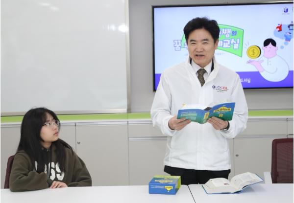 특히 김대중 교육감은 국어사전을 활용한‘대중쌤의 꿈 수당 경제 교실’이라는 주제로 수업을 진행하며 학생들과 소통하는 시간을 가졌다.