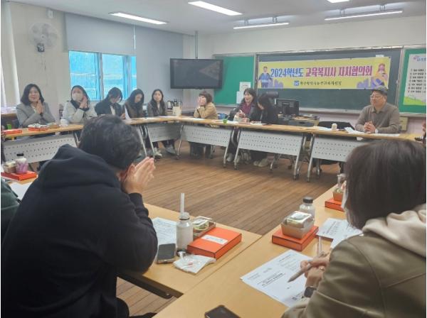 이번 협의회에서는 학교별 교육복지사업 현안 공유가 이뤄졌다. 이와 더불어 지역 연계 기관에서 운영 중인 사회복지법인 굿네이버스 ‘마음 위로 프로그램’, (사)민주시민교육 곁 광주지부(The울림교육센터) 지역연계 돌봄운영 ‘온마을다봄터’ 등 사업 안내도 진행됐다. 마지막으로 정기적인 소통을 위해 자치협의회 운영 방법과 연간 일정을 확정했다.