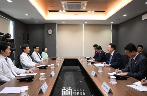대통령은 “보건의료를 국방이나 치안과 마찬가지로 국가의 본질적 기능으로 보고, 예산 편성 시 보건의료 분야의 재정투자를 최우선적으로 고려하겠다”면서 “보건의료 재정을 우선적으로 예산에 반영하려면 의료현장에 계신 의료진 여러분이 하루빨리 대화의 장에 나와 적극적으로 의견을 주셔야 한다. 보건의료 예산이 먼저 편성돼야 나머지 예산 편성도 가능하다”며 대화에 적극 나서주길 호소했다.