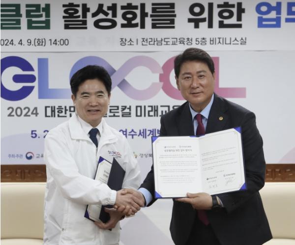 [중앙뉴스라인, 김민수기자] 전라남도교육청과 전라남도체육회가 4월 9일 전라남도교육청 비지니스실에서 김대중 교육감과 송진호 체육회장이 참석한 가운데 학교스포츠클럽 활성화를 위한 업무협약을 체결했다.