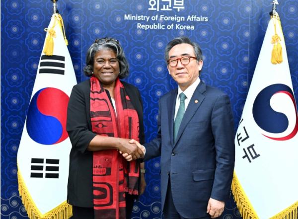 [중앙뉴스라인, 신기철기자] 조태열 외교부 장관은 4월 14일부터 17일까지 방한 중인 린다 토머스-그린필드 (Linda Thomas-Greenfield) 주유엔 미국대사를 4월 15일 10:00-11:00 간 면담하고, ?유엔 안보리 내 한미 및 한미일 간 협력 ?유엔 북한제재위원회 산하 전문가패널 임무 종료에 따른 대응 방안 및 북한인권 문제 ?우리의 안보리 중점 의제와 오는 6월 의장국 수임 관련 협력 ?이란의 이스라엘 공격 및 이스라엘-하마스 사태 등 가자지역 상황, 우크라이나 전쟁, 아이티, 미얀마 등 글로벌 현안 전반에 대해 의견을 교환했다.