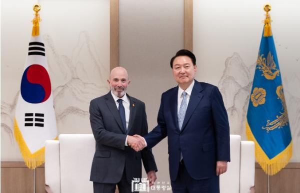 [중앙뉴스라인, 우제헌기자] 윤석열 대통령은 4월 18일 오후 '에반 그린버그(Evan Greenberg)' 미한 재계회의 위원장을 접견했다.