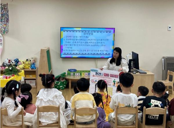‘멘토-멘티교사와 함께한 장애인식개선교육’이 지난 22일 효동유치원 통합학급 대상으로 이뤄졌다. 동부교육지원청 특수교육지원센터는 효동유치원 특수학급 증설 등으로 배치된 신규교사들이 안정적으로 교직생활에 적응할 수 있도록 소속 순회교사와 신규교사 간의 멘토-멘티 교사제를 운영하고 있다.
