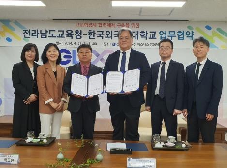 [중앙뉴스라인, 김민수기자] 전라남도교육청은 23일 청사 비즈니스실에서 한국외국어대학교와 고교학점제 협력체제 구축을 위한 업무협약을 체결했다.