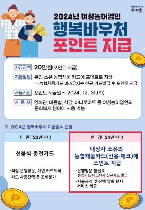 순천시, 여성농어업인 행복바우처 포인트 지급