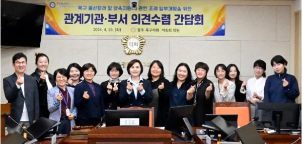 [중앙뉴스라인, 손기주기자] 광주 북구의회 이숙희 의원(두암1·2·3, 풍향, 문화, 석곡동)은 23일 출산장려와 양육지원 강화를 위한 학부모 및 관계부서 간담회를 개최했다고 밝혔다.