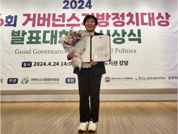 조영임 의원은 ‘거버넌스 지방정치대상’이 시작된 2019년 이후 6년 연속 수상과 함께 지방자치단체장과 지방의원을 통틀어 유일한 대상 2회 수상자라는 영예로운 타이틀을 얻게 됐다.