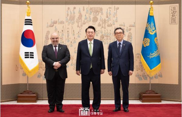 [중앙뉴스라인, 신기철기자] 윤석열 대통령은 4월 26일 오후 대통령실에서 개최된 신임장 제정식에서 주한 상주대사 9명의 신임장을 제출받았다.