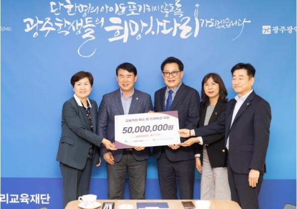 [중앙뉴스라인, 손기주기자] 광주광역시교육청이 설립한 광주희망사다리교육재단이 26일 보광건설(주) 등으로부터 6천만원의 기부금을 전달받았다고 밝혔다.
