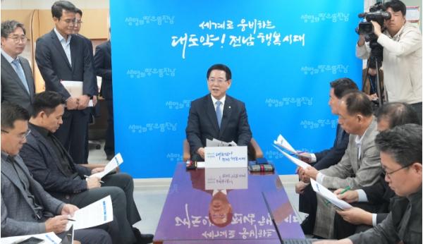 공모에 따른 지역 갈등에 대해선 “공모가 갈등을 부추긴다고 주장하는 것 자체가 오히려 갈등을 조장하는 것이다. 경쟁은 하되 지나친 갈등은 오히려 정부에 대한 전남의 발언권을 약화시킬 수 있으니, 양 대학이 공모에 응하길 바란다”며 “두 대학이 공모에 응하도록 최대한 노력하겠지만, 어느 단계에 가면 절차를 계속 미룰 수는 없는 입장”이라고 덧붙였다.