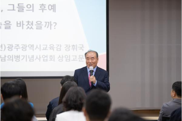 강사로 초빙된 장휘국 前 교육감은 한말 호남의병 정신이 가진 의미와 가치를 강조하며, 호남의병의 역사적 배경, 주요 전투, 숭고한 정신 등을 자세히 설명했다.