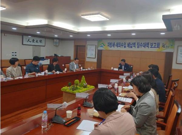 이날 보고회에서 지방세·세외수입 관련 읍·면장과 부서장 20여 명은, 체납 현황, 징수 활동 등을 공유하고, 자유토론으로 방법을 찾았다.