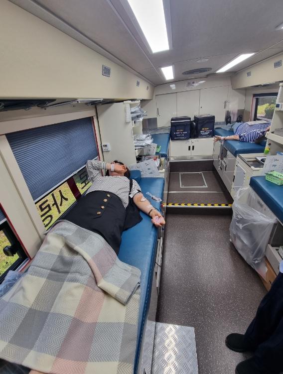 시교육청에 마련된 헌혈버스에서 헌혈을 희망하는 직원들이 자발적으로 참여하여 생명을 나누는 인도적 나눔을 실천했다.