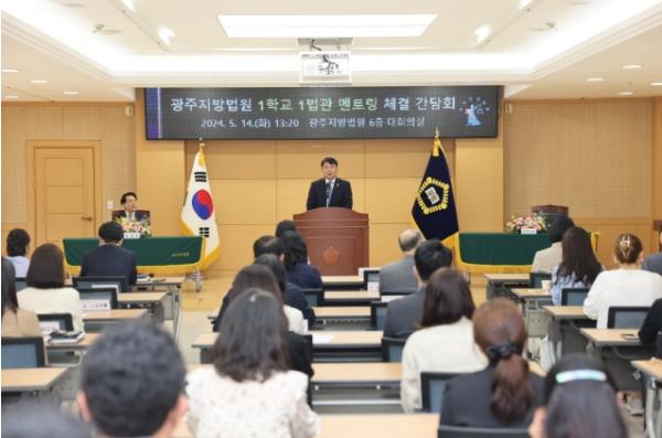 [중앙뉴스라인, 손기주기자] 광주시교육청이 지난 14일 광주지방법원 대회의실에서 ‘1학교 1법관 진로 멘토링’ 체결식을 진행했다.