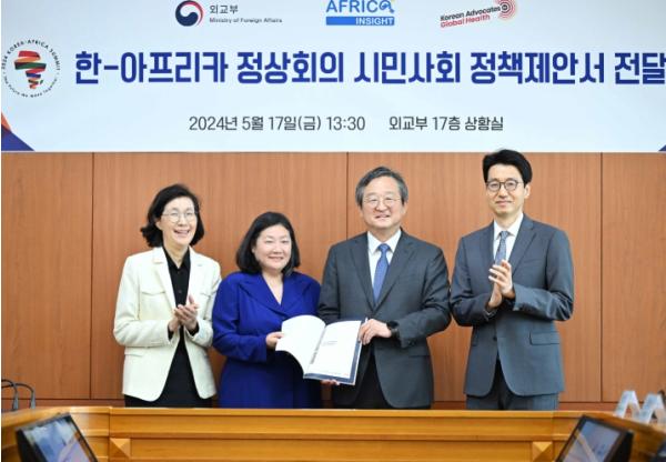 [중앙뉴스라인, 신기철기자] 외교부는 5월 17일 개최된'시민사회 정책제안서 전달식'을 통해 사단법인 아프리카인사이트 및 국제보건애드보커시 주도로 작성한 시민사회 정책제안서를 공식 접수했다.