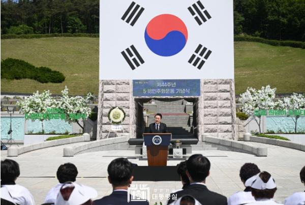 [중앙뉴스라인, 우제헌기자] 윤석열 대통령은 5월 18일 오전 국립5·18민주묘지에서 개최된 제44주년 5·18민주화운동 기념식에 참석해, 1980년 5월 광주의 뜨거운 연대가 오늘 대한민국의 자유와 번영을 이룬 토대가 됐다고 밝혔다.