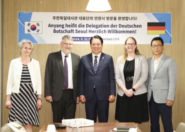 22일 안양시에 따르면, 바이써트 공관차석 등 주한독일대사관 방문단이 이날 오후 2시부터 최근 신축 이전한 스마트도시통합센터와 메타존, 안양예술공원 등을 방문했으며, 최 시장과 만찬을 갖고 간담을 나눴다.