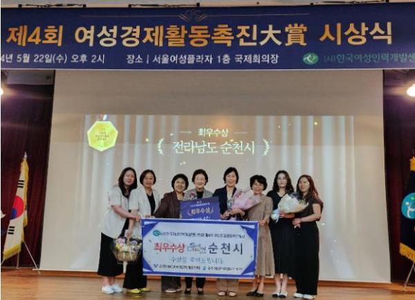 [중앙뉴스라인, 전은희기자] 순천시는 지난 22일 한국여성인력개발센터 연합이 주최하는 '제4회 여성경제활동촉진대상(大賞)'공모에서‘최우수상’을 수상했다고 밝혔다.