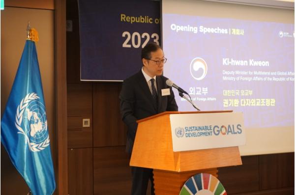 권기환 다자외교조정관은 개회사를 통해 불균등한 개발과 불평등 심화, 정치적 양극화 등 위기가 심화되고 있는 가운데 이에 대한 대응 방안을 제시하는 2023-24 인간개발보고서를 평가하고, 개별 행위자들의 주체성(agency)과 국제협력 등 인간개발에 필요한 핵심 요소들이 한국의 개발 경험에도 녹아있다고 강조했다. 아울러, 우리 정부가 ODA를 지속 확대해 나가는 한편, 2024-25년 안보리 비상임이사국으로서 국제사회에 보다 적극적인 기여를 해나가겠다고 했다.