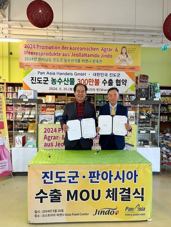 [중앙뉴스라인, 이상권기자] 진도군 농수산물 수출개척단이 오스트리아 빈(Wien)을 방문해 현지 식품수입유통업체인 ‘(주)판아시아(Pan Asia Handels GmbH)’와 300만달러 수출협약을 체결했다.