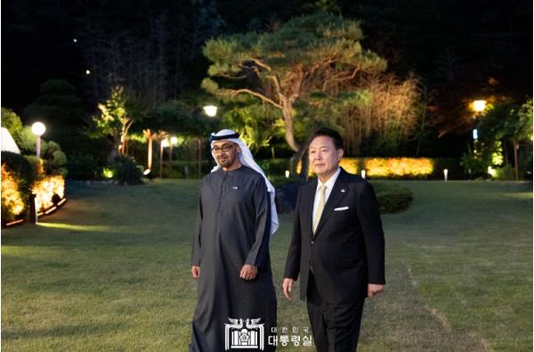 [중앙뉴스라인, 우제헌기자] 윤석열 대통령 부부는 5월 29일 관저에서 국빈 방한 중인 아랍에미리트연합국(UAE)「모하메드 빈 자이드 알 나흐얀(Mohamed bin Zayed Al Nahyan)」대통령과 차담을 가졌다.