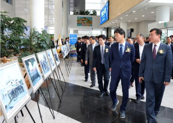 이날 사진전 개막식은 서동욱 의장과 도의원들을 비롯해 명창환 행정부지사, 김대중 교육감, 서민호 도의회 의정자문위원회 위원장 등 100여 명이 참석했으며 기념사, 축사, 도의회 각 상임위원장들이 함께하는 테이프 커팅 순으로 진행됐다.