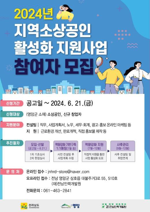 소상공인과 예비 창업자들은 영암군과 (재)전남인력개발원 홈페이지에서 신청서 등 자세한 지원사업 정보와 신청 절차를 볼 수 있다.