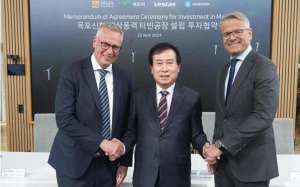 그 일환으로, 지난 4월에는 세계 해상풍력시장을 선도하는 터빈제조사 ‘베스타스’와 글로벌 해운사 ‘머스크’가 목포 신항만에 3,000억원 규모의 투자협약을 체결한 바 있다.