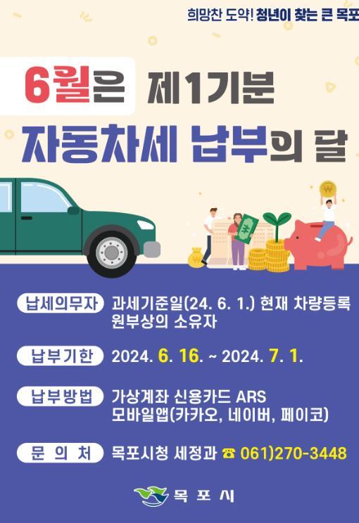 [중앙뉴스라인, 조성열기자] 목포시가 2024년도 제1기분 자동차세를 74,096건 93억원을 부과?고지했다.