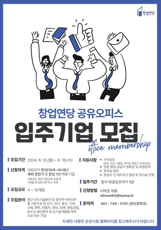순천시 창업연당, 24년 하반기 입주기업 모집