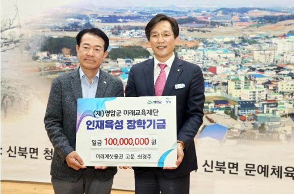 (재)영암군 미래교육재단이 13일 계좌이체 방식으로 신북면 학생에게 지정기탁된 ‘희동·장호 장학금’을 전달했다.
