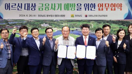 [중앙뉴스라인, 김민수기자] 전라남도는 26일 동부지역본부 팔마사랑방에서 대한노인회 전남연합회와 어르신 금용사기 예방을 위한 업무협약을 하고, 피해예방 교육 등을 추진키로 했다.