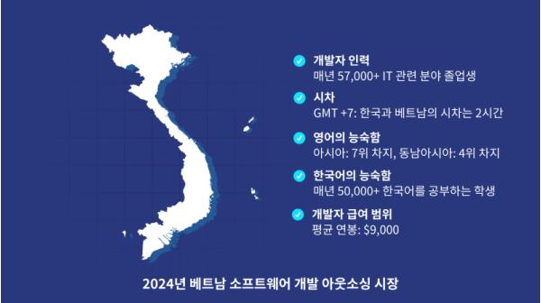 베트남은 최근 IT 아웃소싱의 새로운 허브로 부상하고 있으며, Innovature BPO로부터 2024년 아웃소싱 국가 Top 10에 선정됐다. 인도는 언어와 문화적 차이로 인한 의사소통의 문제로 어려움을 겪고 있고, 중국은 정치적 불확실성으로 인해 일부 기업들에게 어려움을 주고 있다. 이에 비해, 베트남은 비교적 안정적인 정치 환경과 정부의 강력한 IT 산업 육성 정책 덕분에 강력한 경쟁국을 능가 할 잠재력을 가지고 있다.