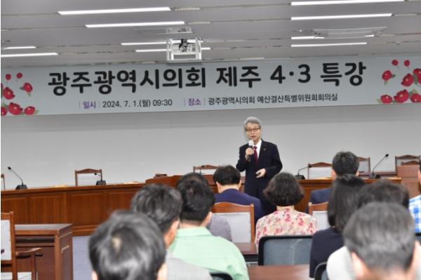 [중앙뉴스라인, 손기주기자] 광주광역시의회는 7월 1일에 의원 및 사무처 직원 등을 대상으로 제주 4·3 특강을 개최했다.