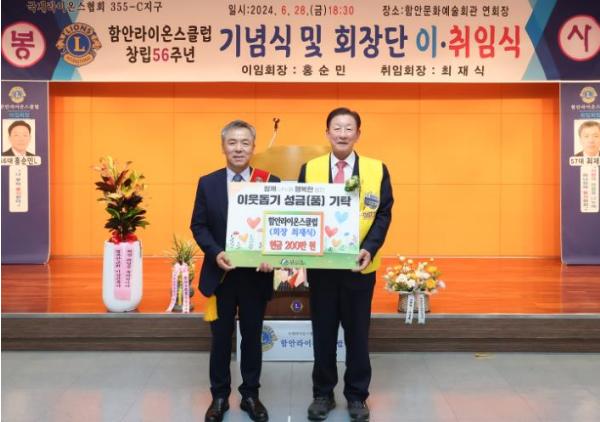 특히. 기탁식을 통해 관내 어려운 이웃을 돕기 위한 성금 200만 원을 함안군에 기탁하여 지역사회에 훈훈한 온정을 함께 더했다.